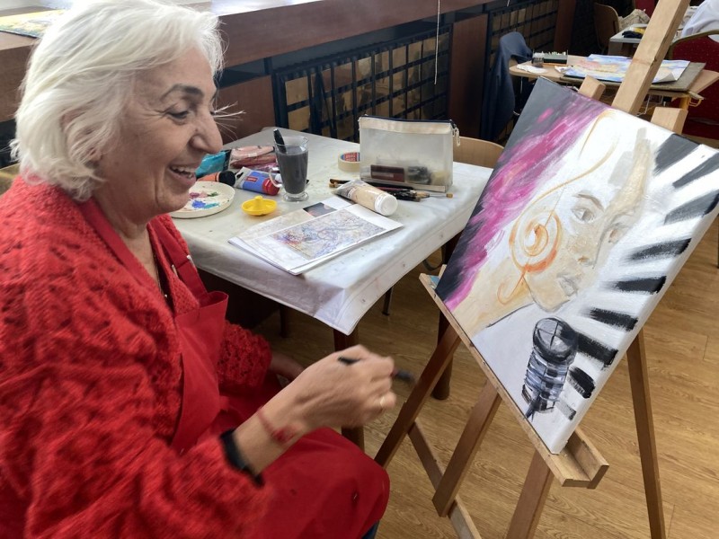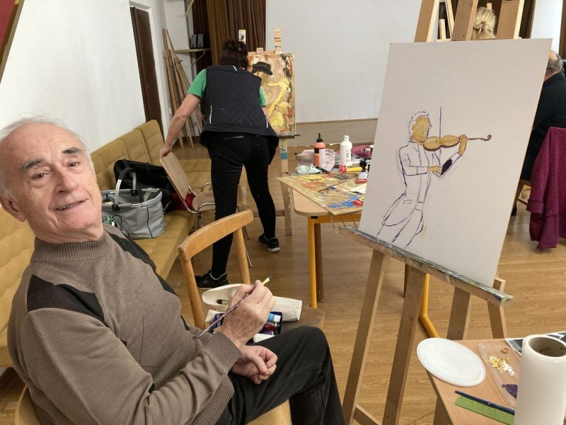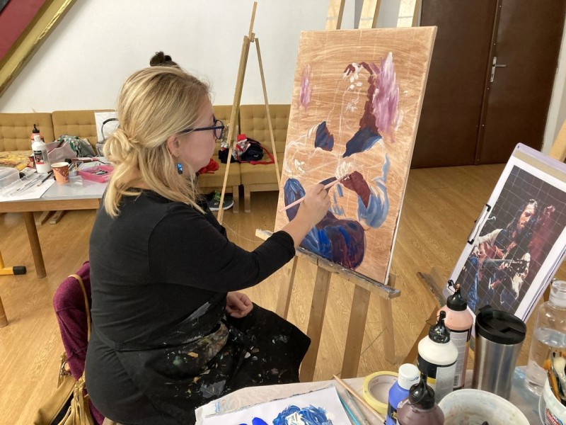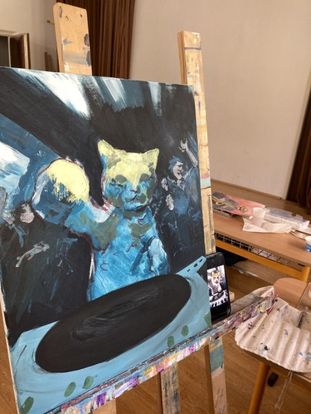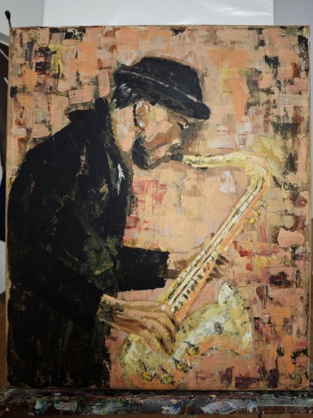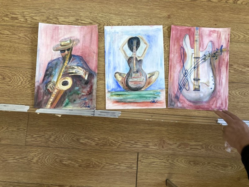 Téma: hudba/hudobníci - štylizovane, abstrakne/orfizmus